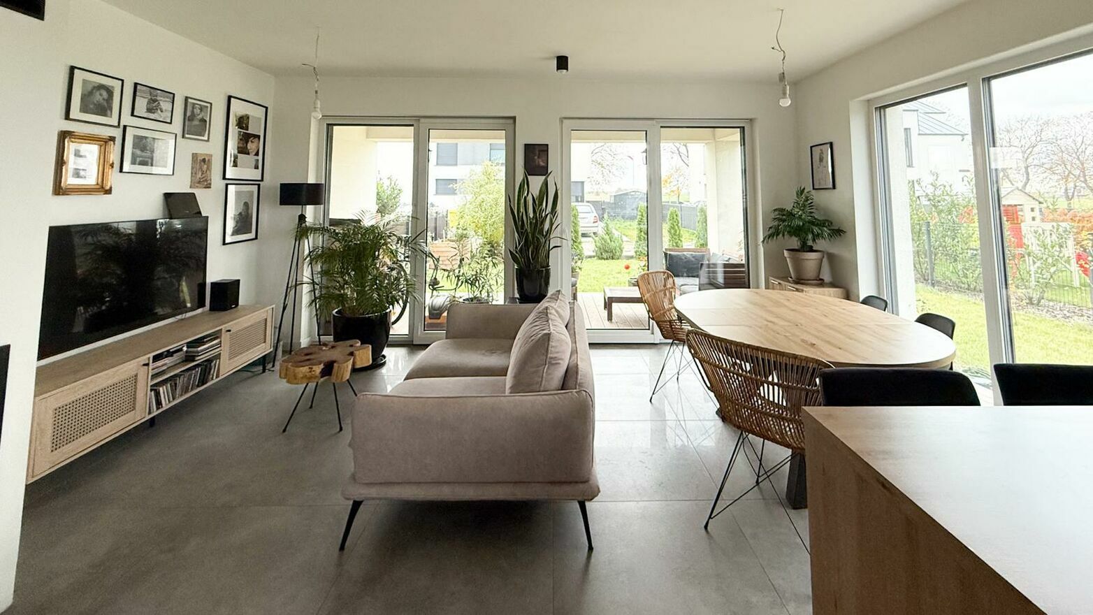 wyjście z salonu na taras i ogród