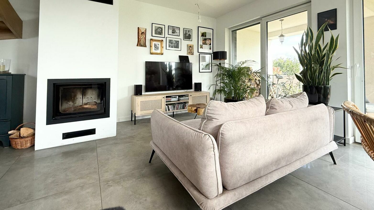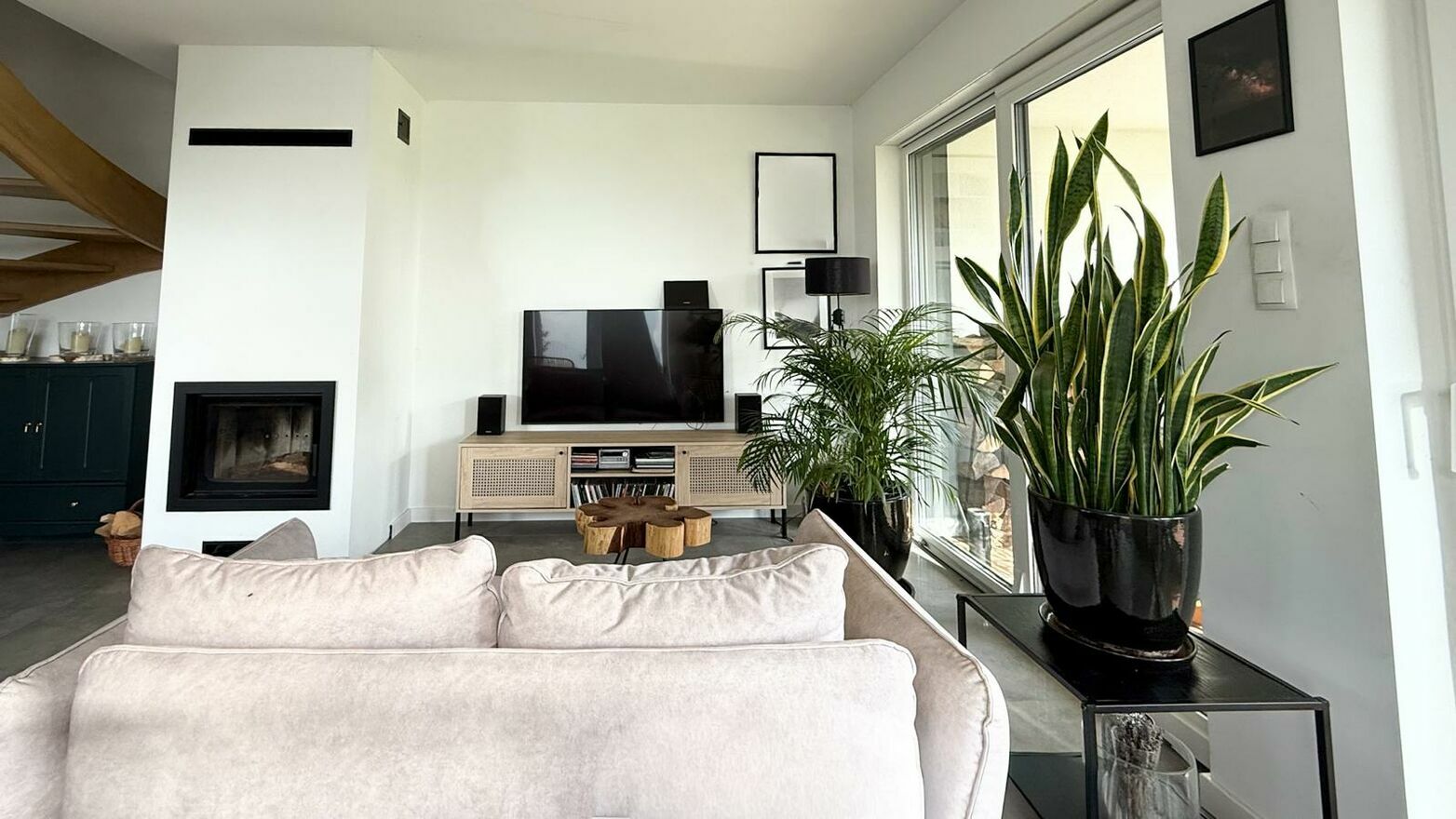 stylowy kominek w salonie