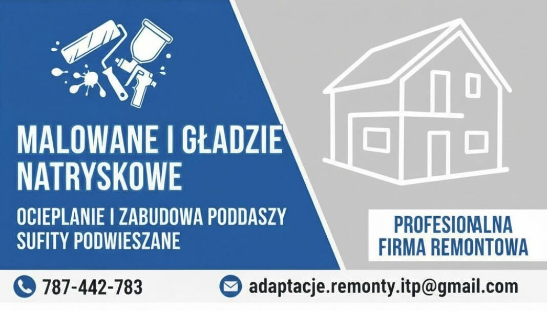 Oferuję profesjonalne malowanie powierzchni wewnętrznych metodą natryskową.Malujemy domy, mieszkania, hale,magazyny i inne. Wykonujemy również gładzie na wysokim poziomie.